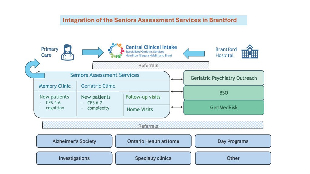 The Seniors Assessment Service (SAS) encompasses the Memory Clinic and Geriatric Clinic, and operates in collaboration with the Brant Community Healthcare System and the Alzheimer's Society of Brant.